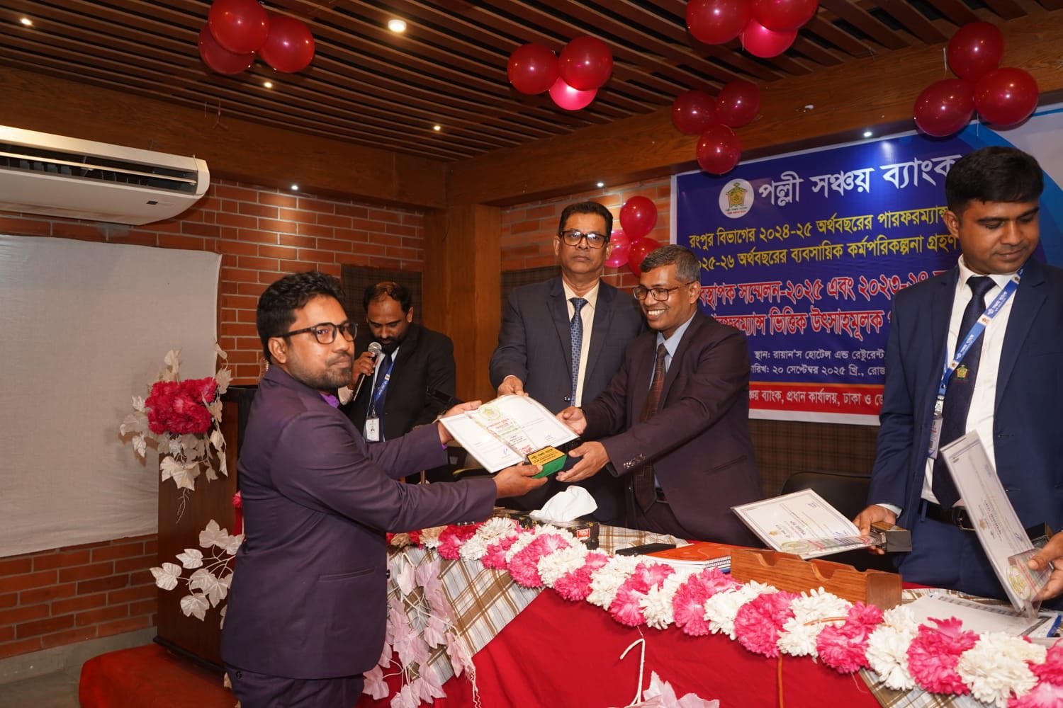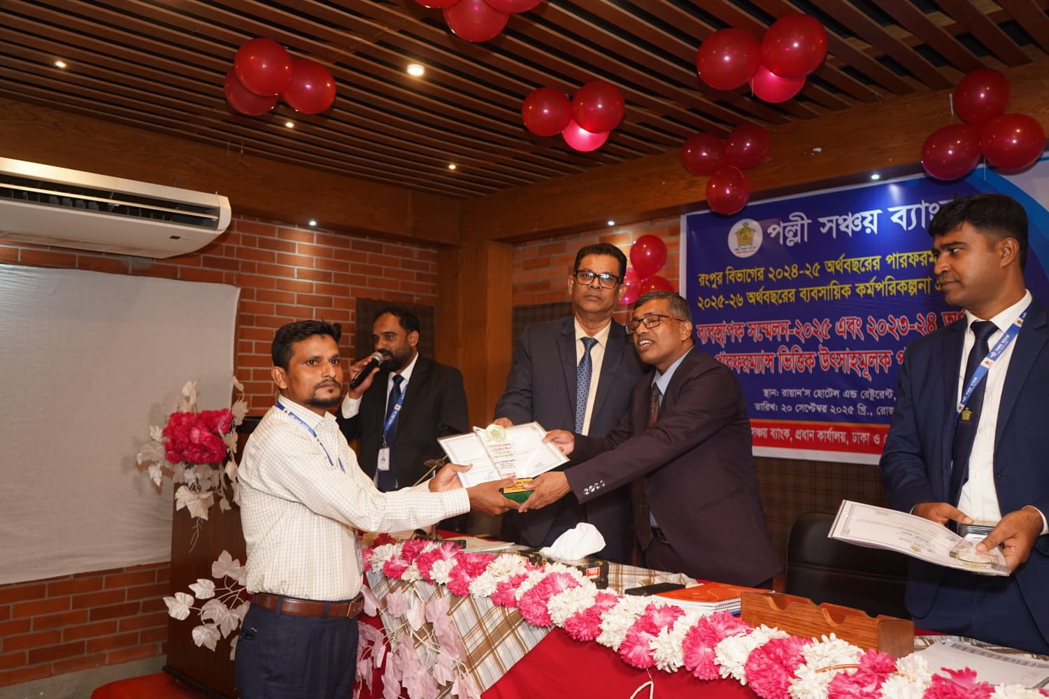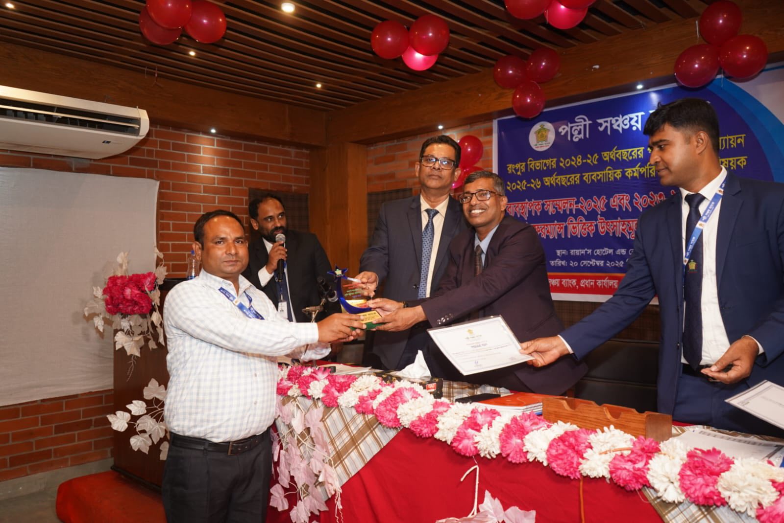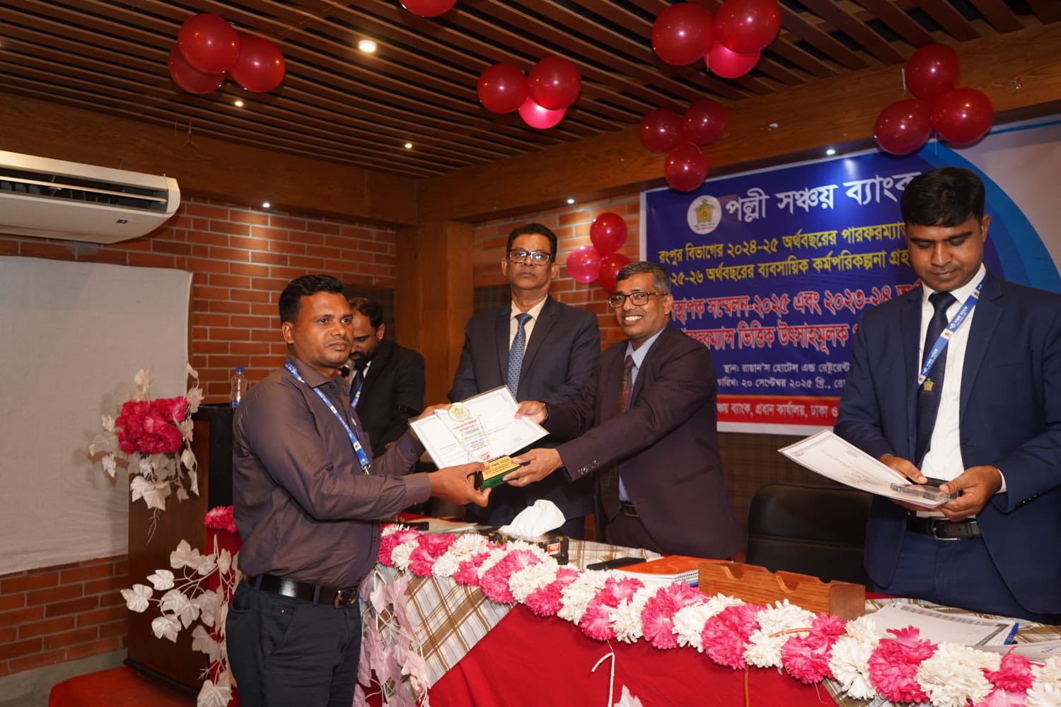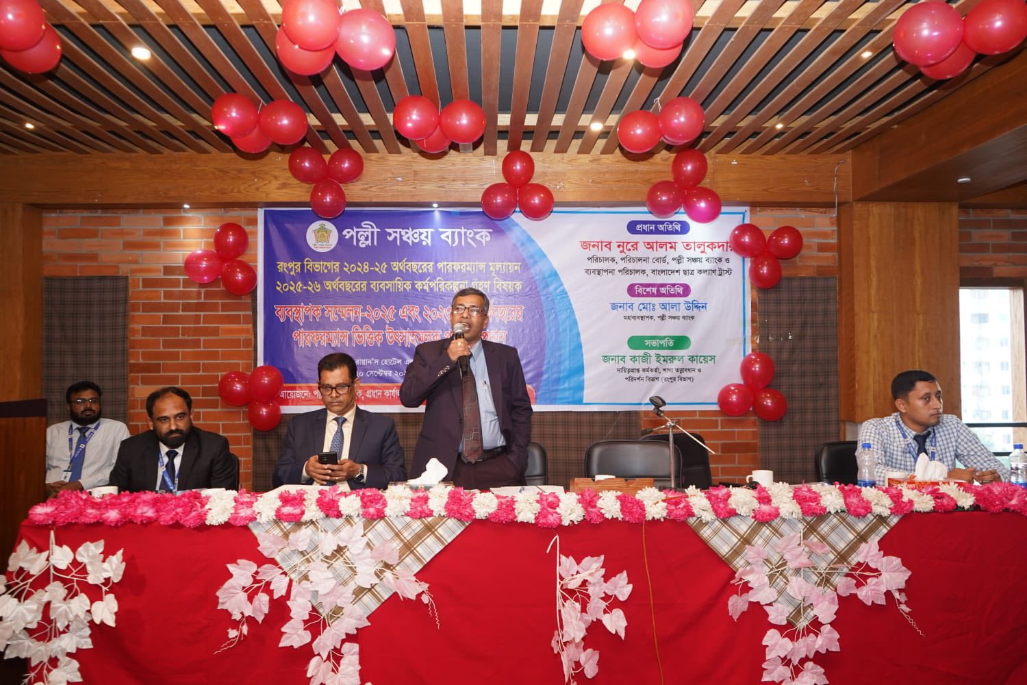 রংপুর বিভাগের আওতাধীন শাখাসমূহের ২০২৪-২৫ অর্থবছরের পারফরম্যান্স মূল্যায়ন, ২০২৫-২৬ অর্থবছরের ব্যবসায়িক কর্মপরিকল্পনা গ্রহণ এবং ২০২৩-২৪ অর্থবছরের পারফরম্যান্সভিত্তিক উৎসাহমূলক পুরস্কার প্রদান উপলক্ষে ২০ সেপ্টেম্বর ২০২৫, শনিবার রায়ান'স হোটেল এন্ড রেস্টুরেন্ট, রংপুরে দিনব্যাপী এক গুরুত্বপূর্ণ সম্মেলন অনুষ্ঠিত হয়। অনুষ্ঠানে প্রধান অতিথি হিসেবে উপস্থিত ছিলেন পল্লী সঞ্চয় ব্যাংকের সম্মানিত পরিচালক ও বাংলাদেশ ছাত্রকল্যাণ ট্রাস্টের ব্যবস্থাপনা পরিচালক নুরে আলম তালুকদার মহোদয়। বিশেষ অতিথি হিসেবে উপস্থিত ছিলেন ব্যাংকের মহাব্যবস্থাপক মো: আলা উদ্দিন মহোদয়।