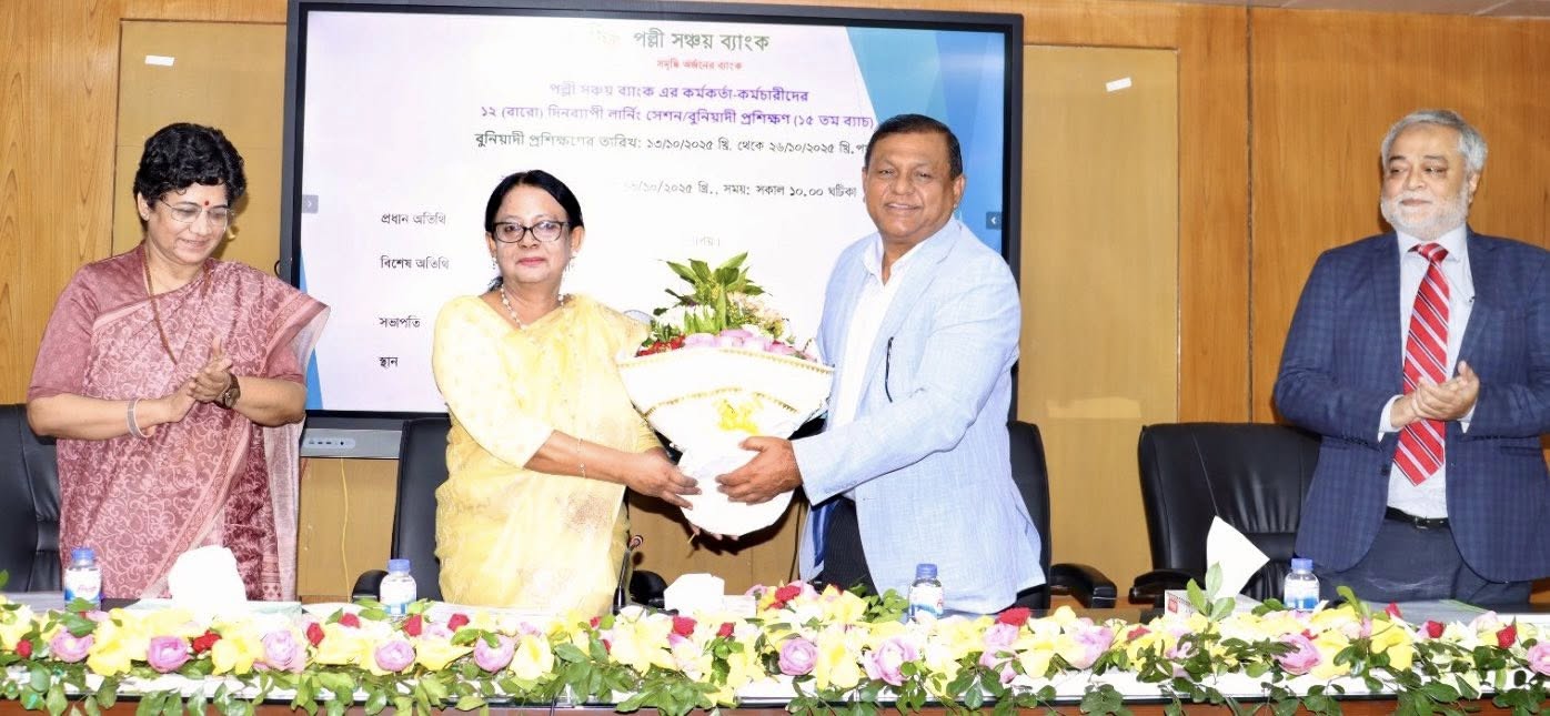 ১৩ অক্টোবর, ২০২৫ তারিখে পল্লী সঞ্চয় ব্যাংকের প্রধান কার্যালয়ের প্রশিক্ষণ কক্ষে ১২ দিনব্যাপী ১৫তম ব্যাচের প্রশিক্ষণ কর্মসূচির উদ্বোধন অনুষ্ঠিত হয়। অনুষ্ঠানে প্রধান অতিথি হিসেবে উপস্থিত ছিলেন অর্থ মন্ত্রণালয়ের আর্থিক প্রতিষ্ঠান বিভাগের সচিব নাজমা মোবারেক মহোদয়। বিশেষ অতিথি ছিলেন ব্যাংকের চেয়ারম্যান ও সাবেক সচিব মোঃ আব্দুল খালেক মহোদয়। অনুষ্ঠানে সভাপতিত্ব করেন ব্যাংকের ব্যবস্থাপনা পরিচালক সালমা বানু মহোদয়।