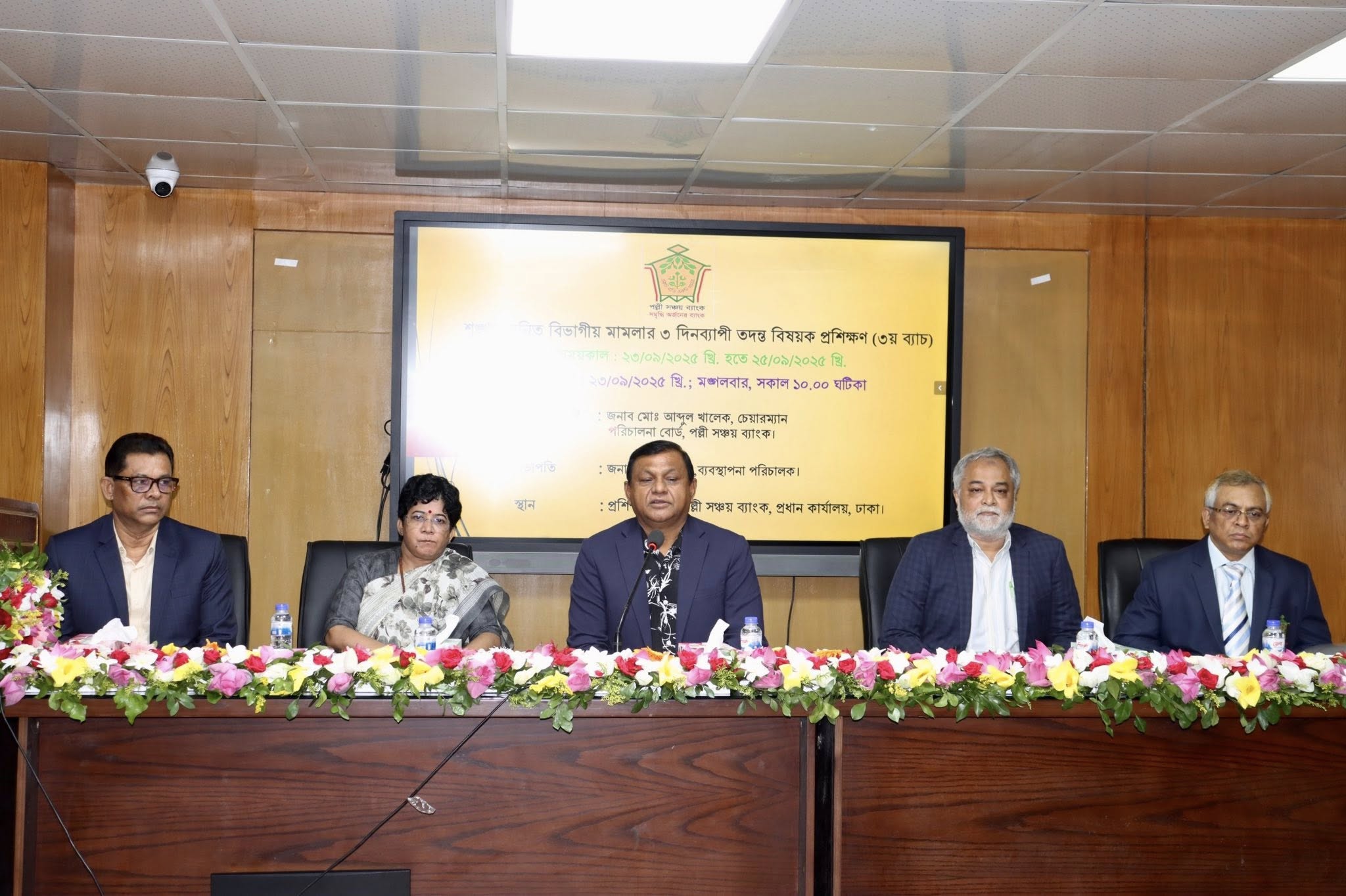 ২৩ সেপ্টেম্বর, ২০২৫ তারিখে পল্লী সঞ্চয় ব্যাংকের প্রধান কার্যালয়ের প্রশিক্ষণ কক্ষে ৩ দিনব্যাপী "শৃঙ্খলাজনিত বিভাগীয় মামলার তদন্ত প্রশিক্ষণ কর্মসূচির" উদ্বোধনী অনুষ্ঠান অনুষ্ঠিত হয়েছে। অনুষ্ঠানে প্রধান অতিথি হিসেবে উপস্থিত ছিলেন ব্যাংকের পরিচালনা পর্ষদের সম্মানিত চেয়ারম্যান ও সাবেক সচিব মোঃ আব্দুল খালেক মহোদয়। অনুষ্ঠানের সভাপতিত্ব করেন ব্যাংকের সম্মানিত ব্যবস্থাপনা পরিচালক সালমা বানু মহোদয়। এছাড়াও, ব্যাংকের উপব্যবস্থাপনা পরিচালক এবং মহাব্যবস্থাপক মহোদয়গণসহ ঊর্ধ্বতন কর্মকর্তাবৃন্দ উক্ত অনুষ্ঠানে উপস্থিত ছিলেন।